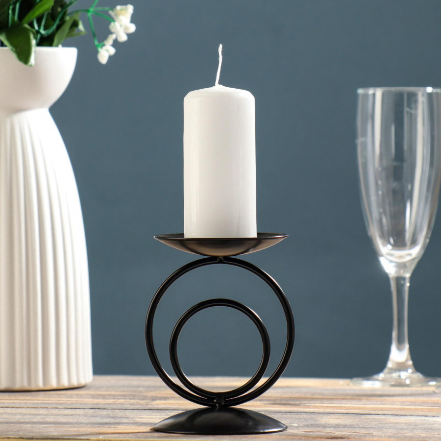 Подсвечник гармонично дополнит антураж любого помещения или станет интересным аксессуаром для романтичной фотосессии.Подставка для свечей изготавливается из металла - материал не выделяет вредных веществ при нагревании и не портится при длительном использовании.Свечи в подсвечниках можно разместить на любой поверхности, уменьшив риск порчи мебели или скатерти воском, а металлическая иголка надежно закрепит источник света.