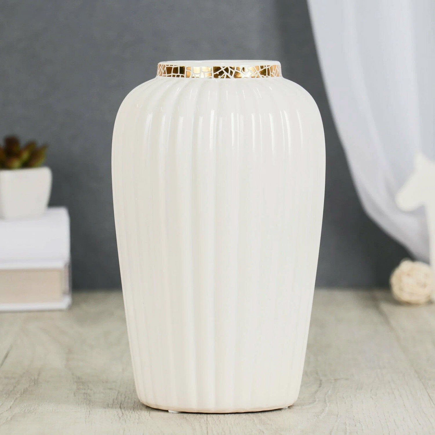 Ваза керамика настольная "Геометрия люкс" горлышко, 8х23 см, белый 4635481