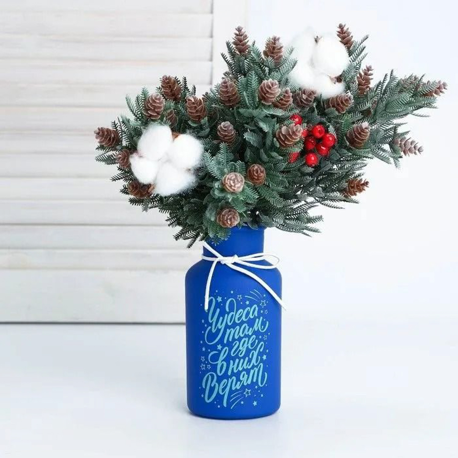 Ваза матовая «Чудеса там, где в них верят» синяя, 16 х 8 х 8 см 6631179