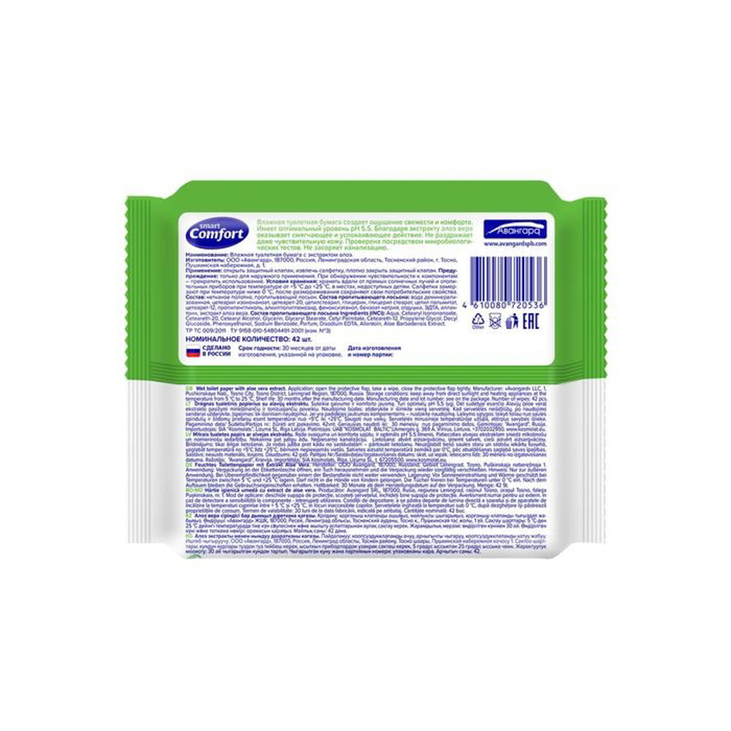 Бумага туалетная Comfort smart влажная с алоэ вера 42шт арт.72053 *45