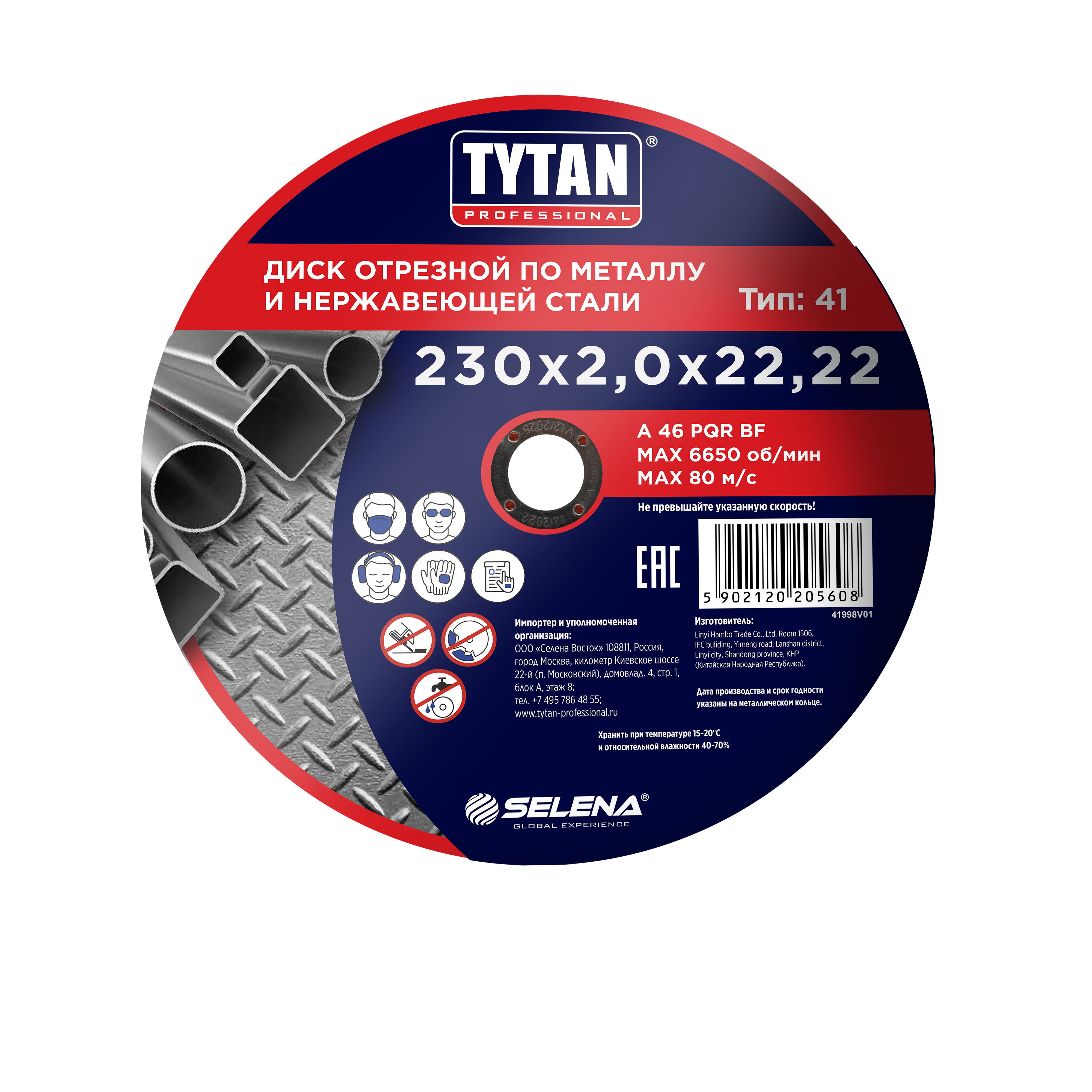 Круг отрезной 230*2,0*22.22 по МЕТАЛЛУ + нерж.стали арт.15608 TYTAN *10/50/100