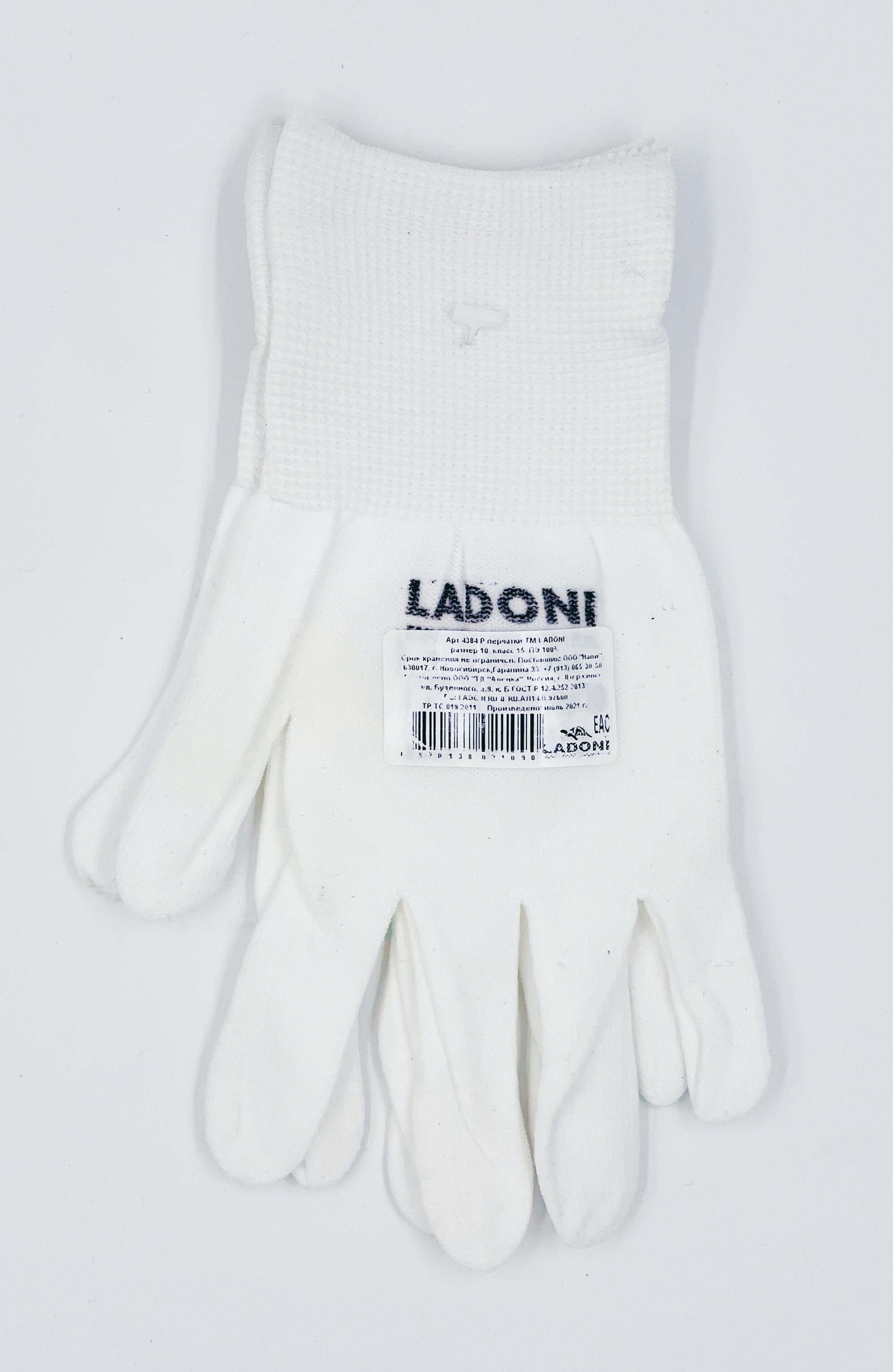 Перчатки рабочие нейлон без покрытия белые (арт.4384 Р) *10/200