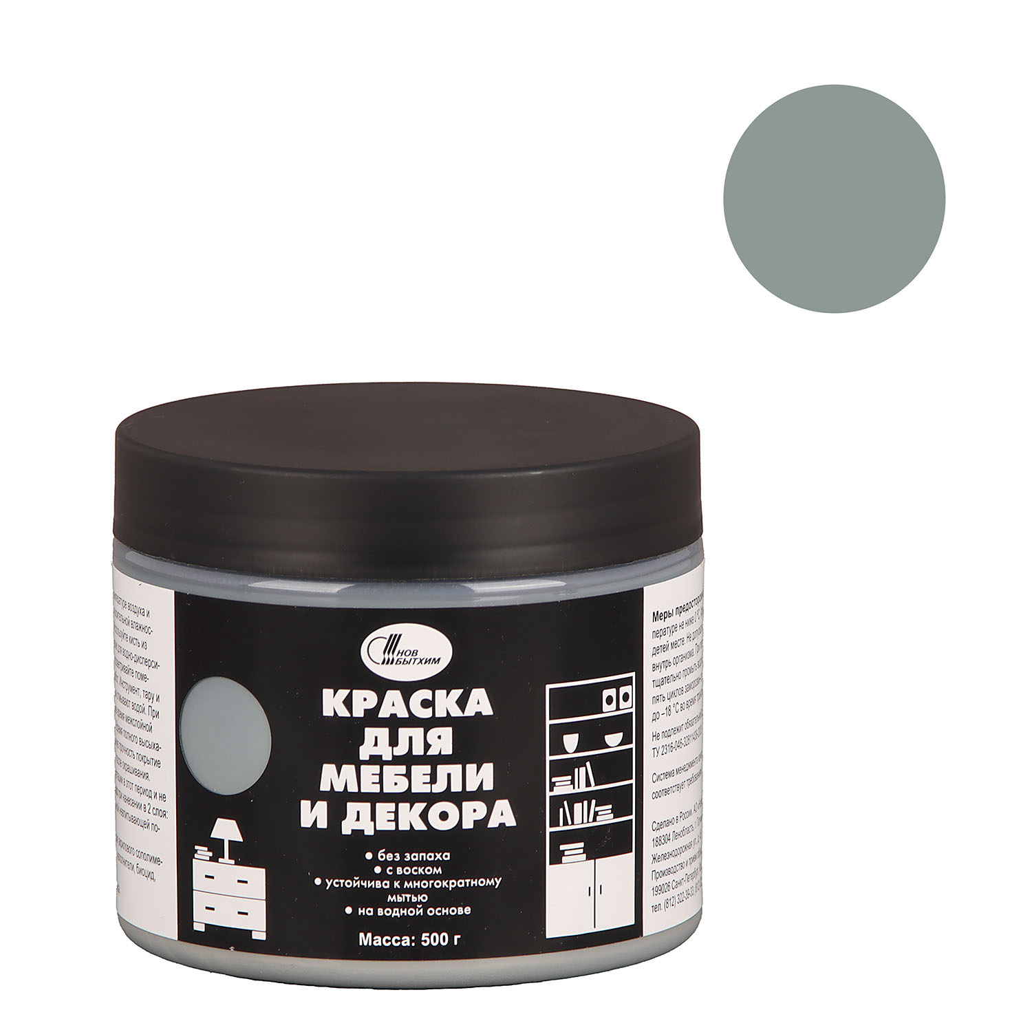 Краска акриловая для мебели и декора Гранитный 0,5 кг Новбытхим *1/6