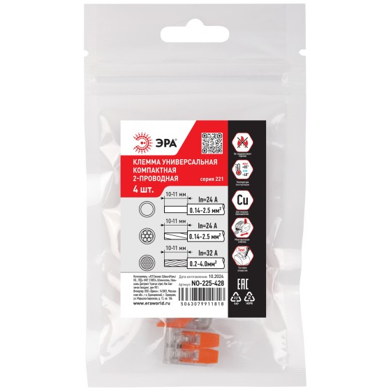 Клемма соединительная 2 конт. с рычажками 0,2-4мм2 (в уп4шт) Б0067907 * 1/50