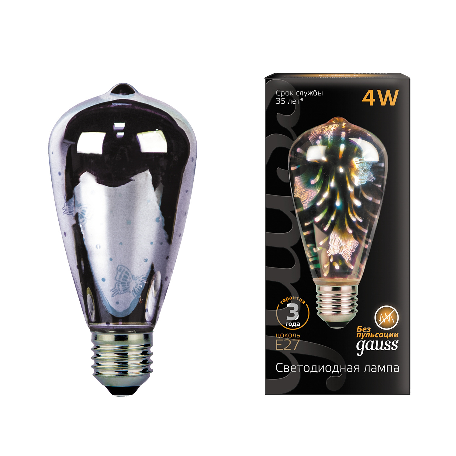 Лампа Gauss LED 3D-Butterfly E27 4W