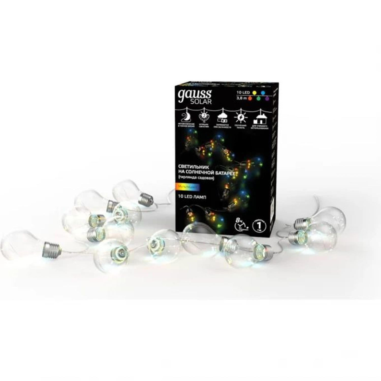 Гирлянда садовая "Шары" Gauss Solar 3,8м мультицвет, солнечные батареи 10 LED GS035 *1/12