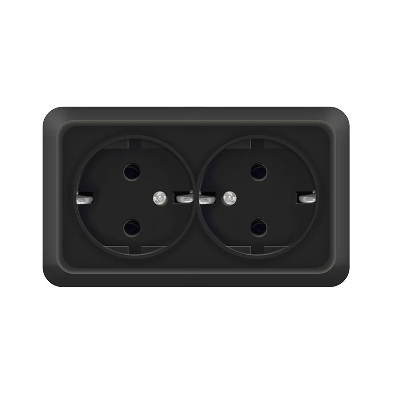 Розетка "Олимп" ОП 2-мест. черный с/з 16А IP20 UNIVersal 2216 *10/200