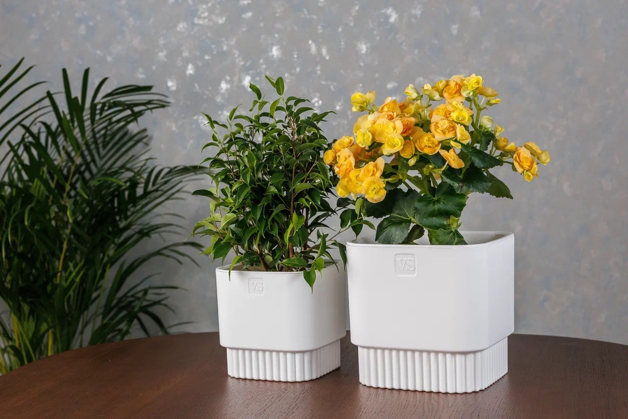 Кашпо пластм. "Бостон" 2,7л 153х153мм h147мм со вставкой Белый АМБ-2,7-01 ("VipSet") *1/10