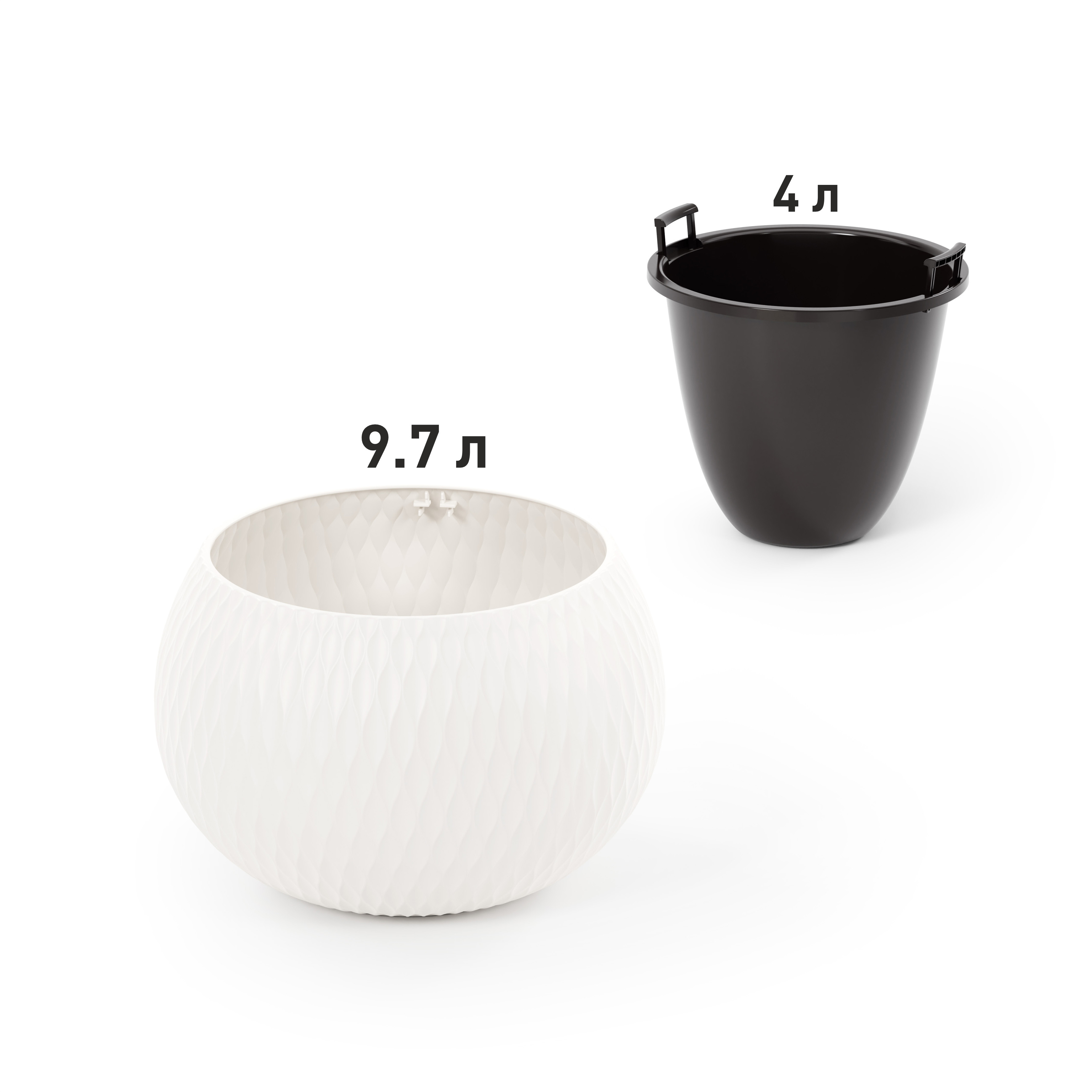 Кашпо пластм. "Жемчужина" 9,7л d 290мм h195мм, со вставкой 4л Белый М8722 (ЗПИ "Альтернатива") *1/4