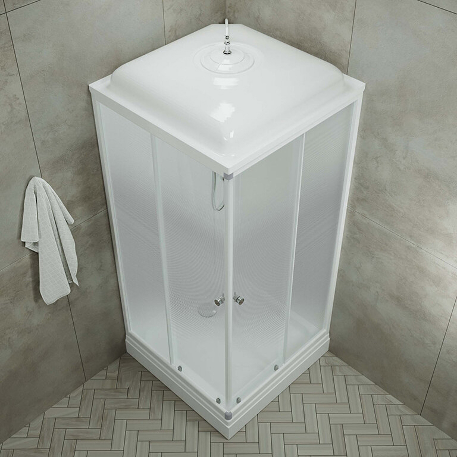 Кабина душевая 90*90 А Сатин-К ДН4 квадрат поддон низкий Белый (6 мест+сифон D90мм)