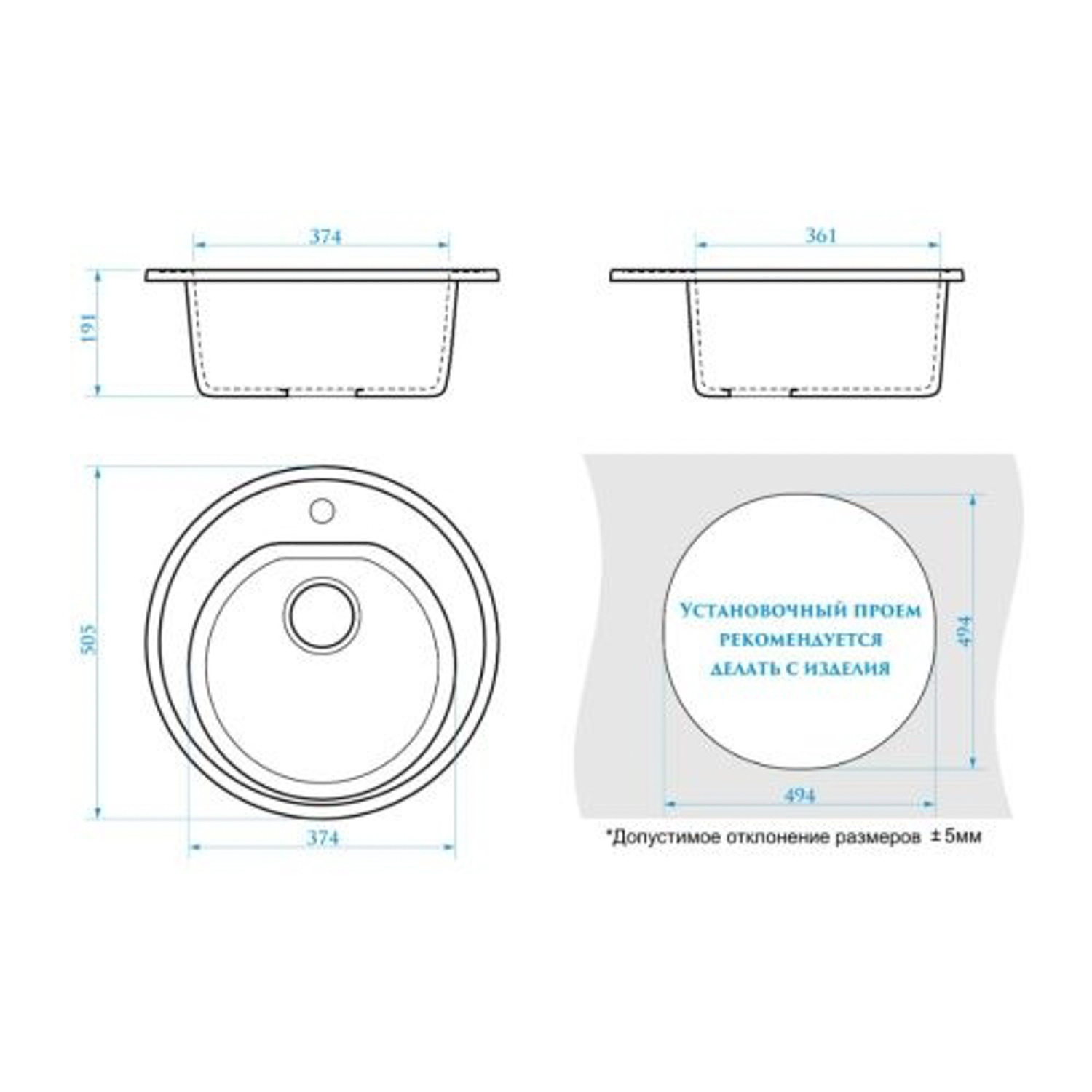 Мойка из искусственного камня круглая бежевая матовая AGATA 3/Q2 (510 мм) *1