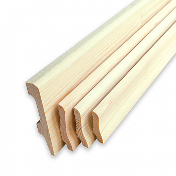 Плинтус – это деревянный профиль для декорирования зазора между полом и стенами. В сечении он похож на прямоугольный треугольник, катеты которого вплотную состыковываются со стеной и полом, а гипотенуза, являющаяся лицевой стороной изделия, может быть ровной, фигурной выпуклой или вогнутой.