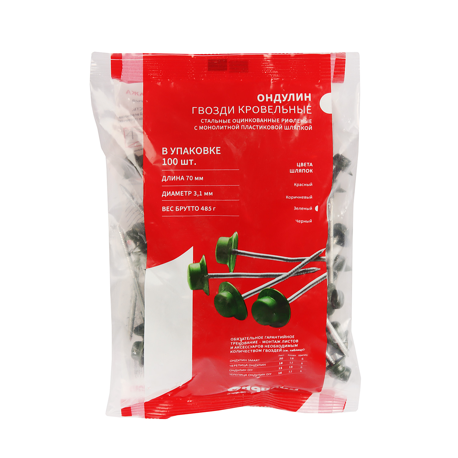 упакГвозди Ондулин зеленые обеспечивают надежное крепление кровли, герметизацию и исключительную устойчивость к воздействию ветра. Подходят для: листов Ондулин Смарт, черепицы Ондулин, Ондувиллы.