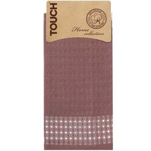 Полотенце вафельное 40*60см на хангере Крупная клетка шоколадный 150г/м2 Touch *6