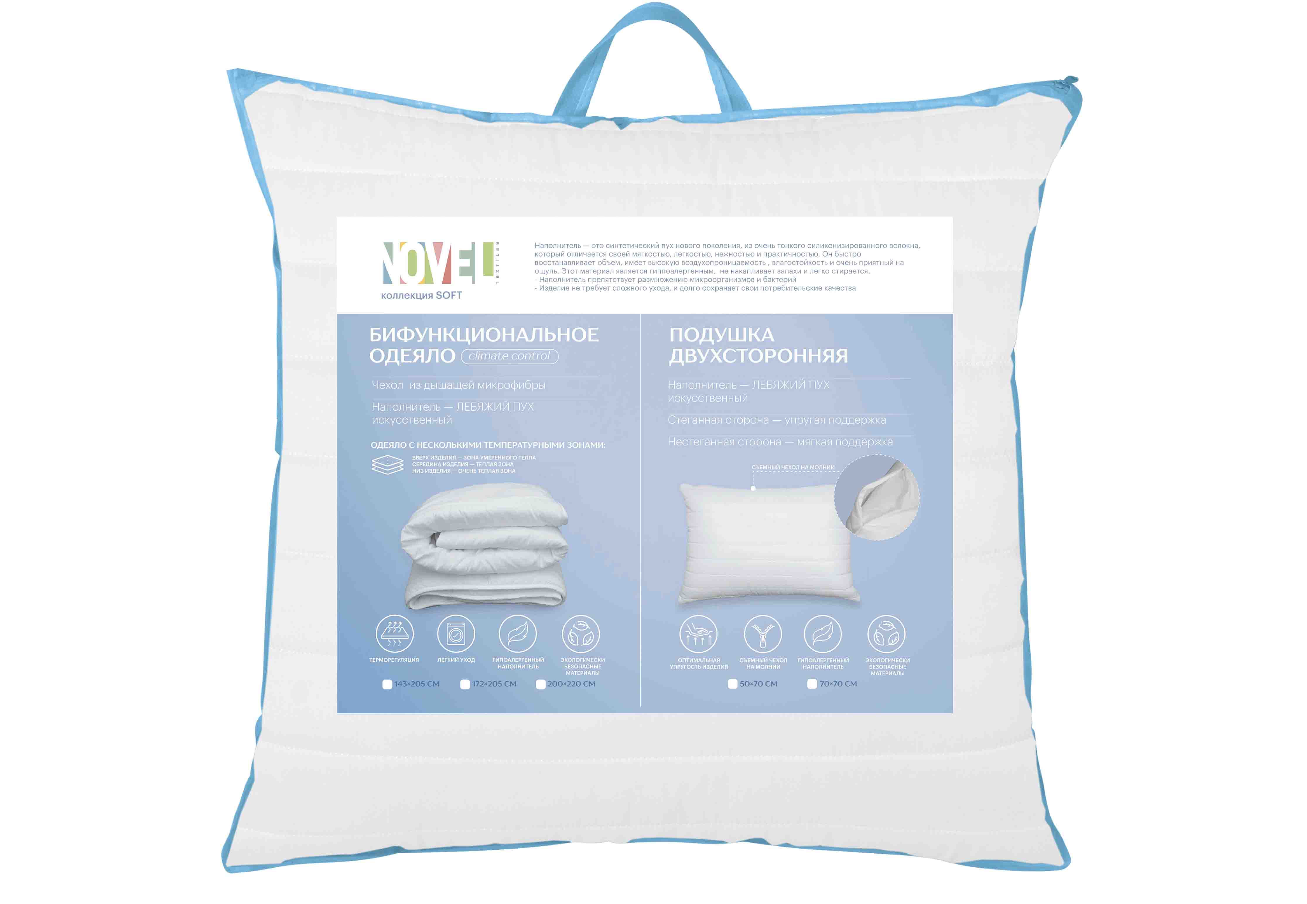 Подушка двухсторонная 70*70см Soft, съемный чехол микрофибра NOVEL *1/5