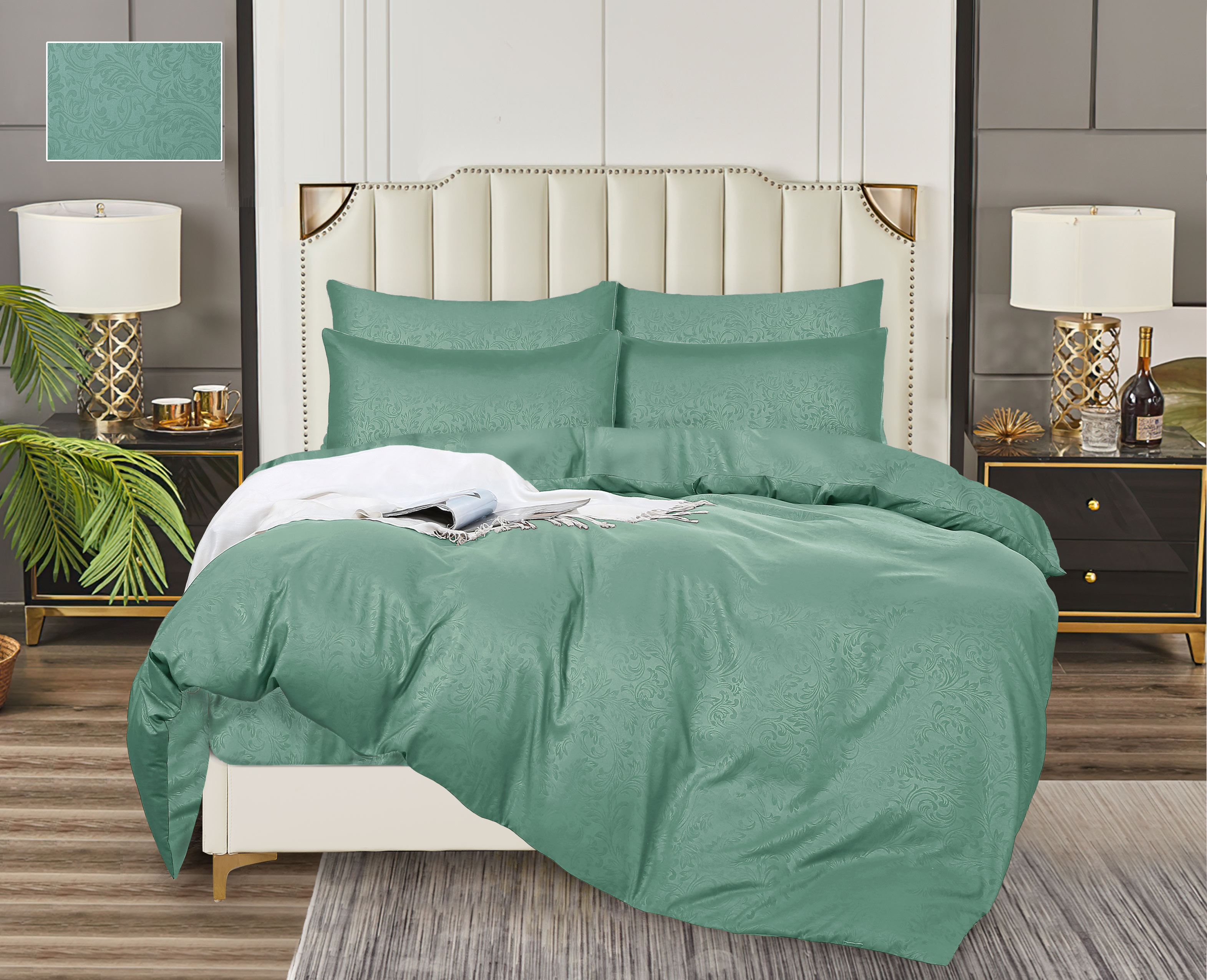 Постельное белье 2сп бамбук жаккрад Орхидея мята 16-5106, наволочки 70*70см - 2шт *1