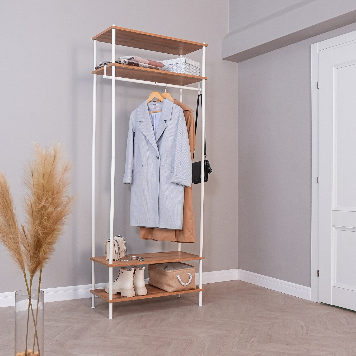 Вешалка напольная "Прихожая 34" "НеШкаф" с 4полками,ш.0,83м,в.2м,гл.0,37м Дер./Бел. ПРНШ 34 Б *1
