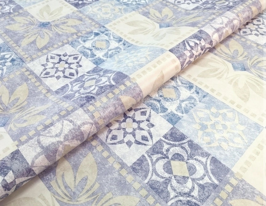 Клеёнка на тканевой основе, полиур.покр."Elegance" "Узоры" Сир./Беж ш.1,37м GW-21591 "Great Way" *20
