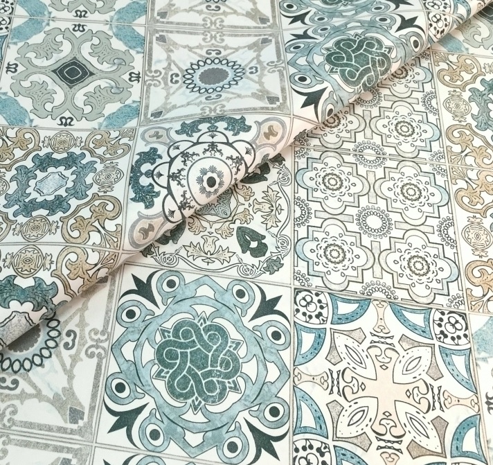 Клеёнка на тканевой основе, полиур.покр."Elegance" "Узоры" бир.-беж.ш.1,37м GW-21587 "Great Way" *20