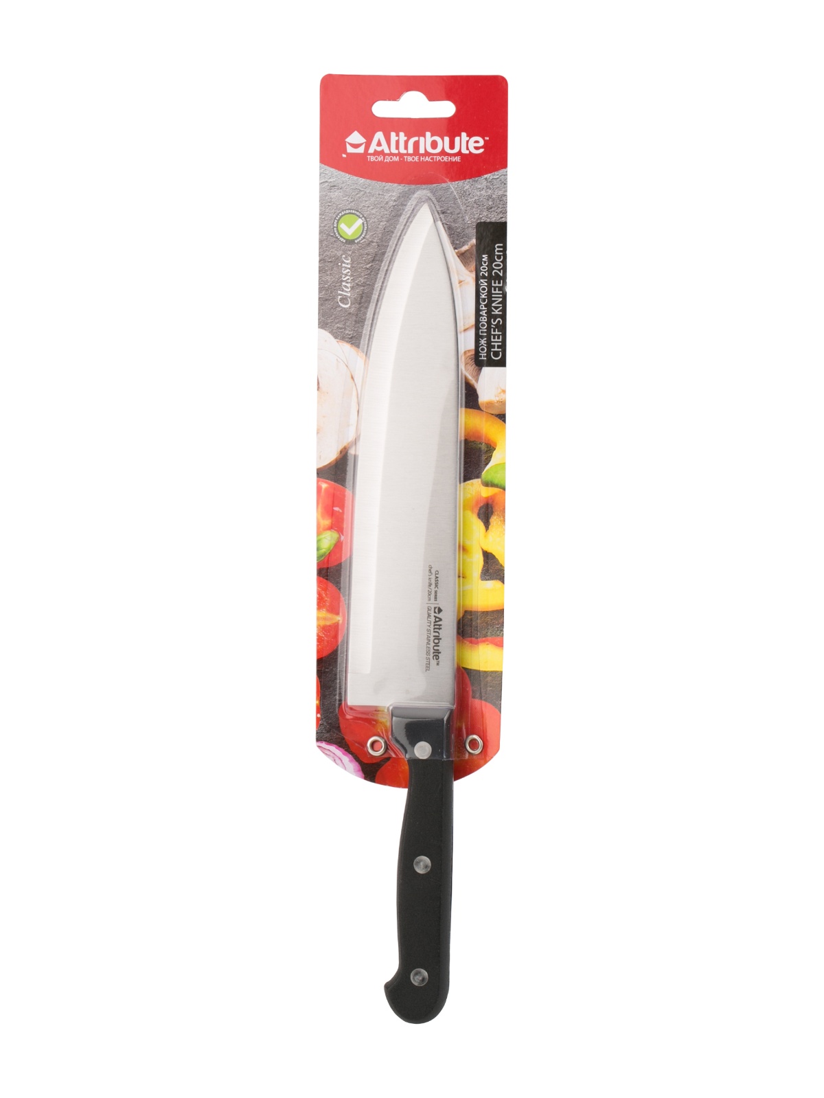 Нож кухонный ATTRIBUTE пл.р. Classic поварской дл.лезв.20см AKC128 блистер *1/6/36