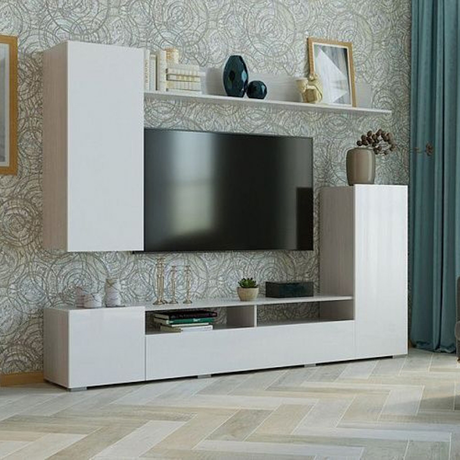 Гостиная "МИЯ" (2130*346*1680мм),ЛДСП ясень анкор светлый,белый глянец*1