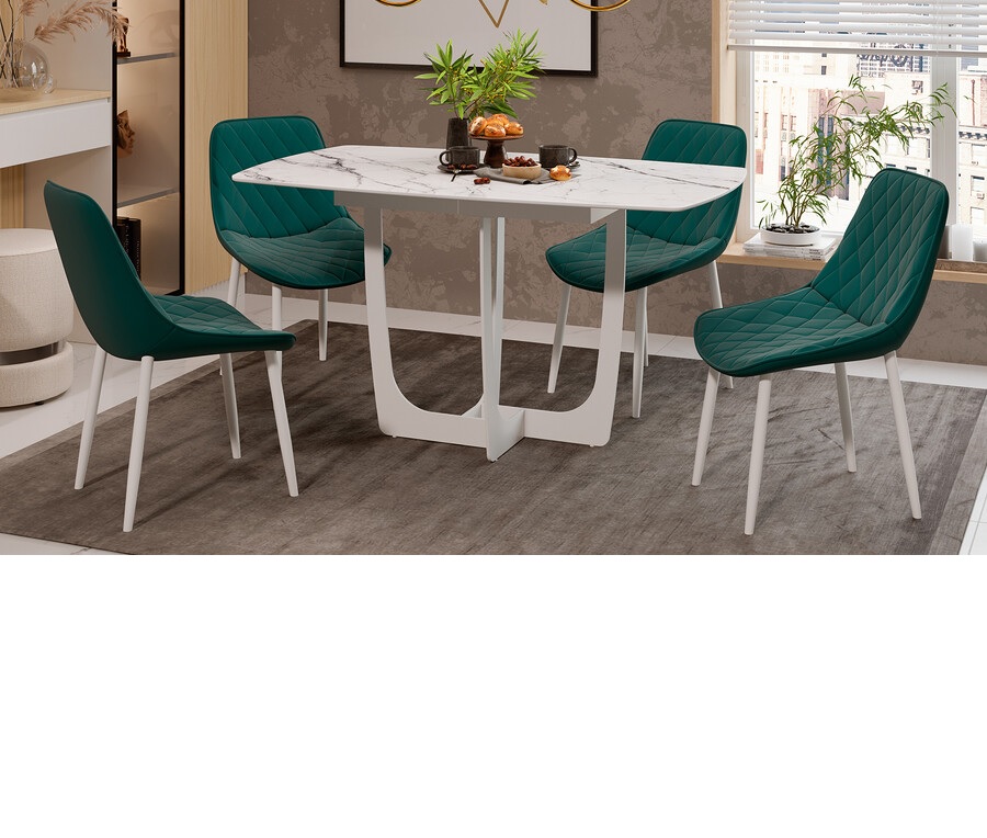 Стол обеденный прямоугольный раздв.Орфей 1400(+400)*850*770мм Белый муар/стекло глян.белый мрамор*1