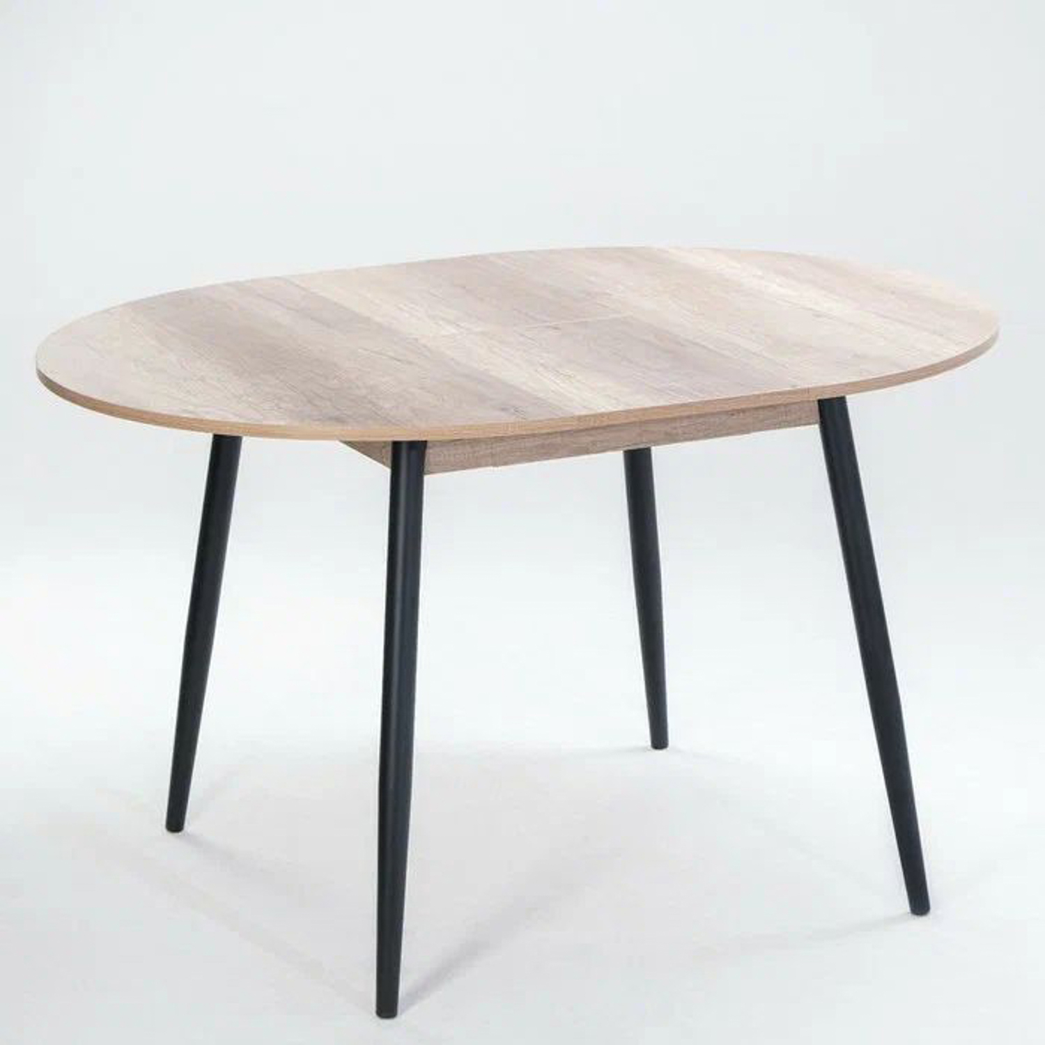 Опоры металлические 4 шт. выполнены из трубы 40 мм, редуцированные, стандартный цвет ножек – черный полимерно-порошковое покрытие. Столешница выполнена из ЛДСП 16 мм., стандартные цвета дуб каньон, метрополитан, ясень черный, сосна светлая, каспий темный, каспий светлый, диаметр столешницы 950 мм.