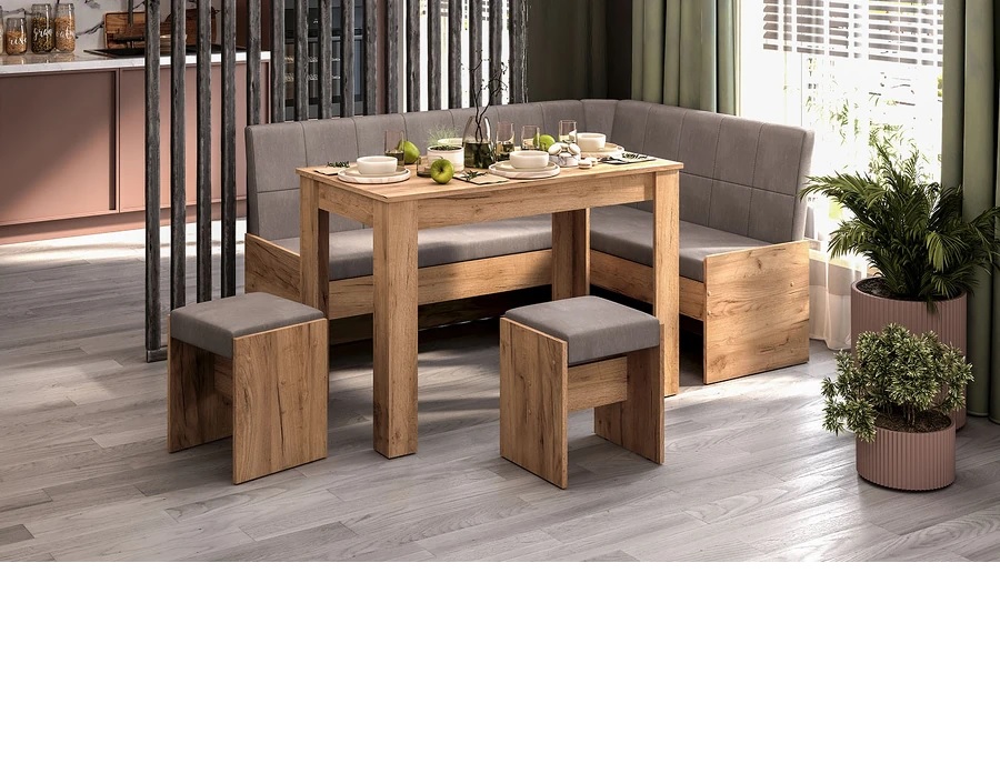 Кухонный уголок Пекин 1.256x1.662xh830 Дуб Крафт золотой/Микровелюр Duna Stone*1