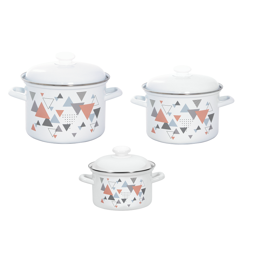 яяяНабор кастрюль эмалированных: 2,0л+3,0л+4,5л рис. "Треугольники" С-007АП2/4 "Лысьвенские ЭМАЛИ"*1