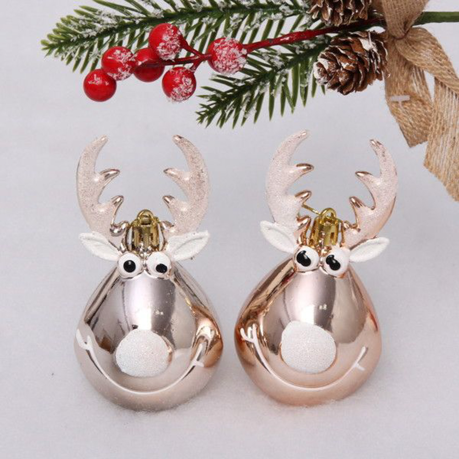 Набор елочных игрушек "Счастливый лось" 13 см, 2 шт., шампань