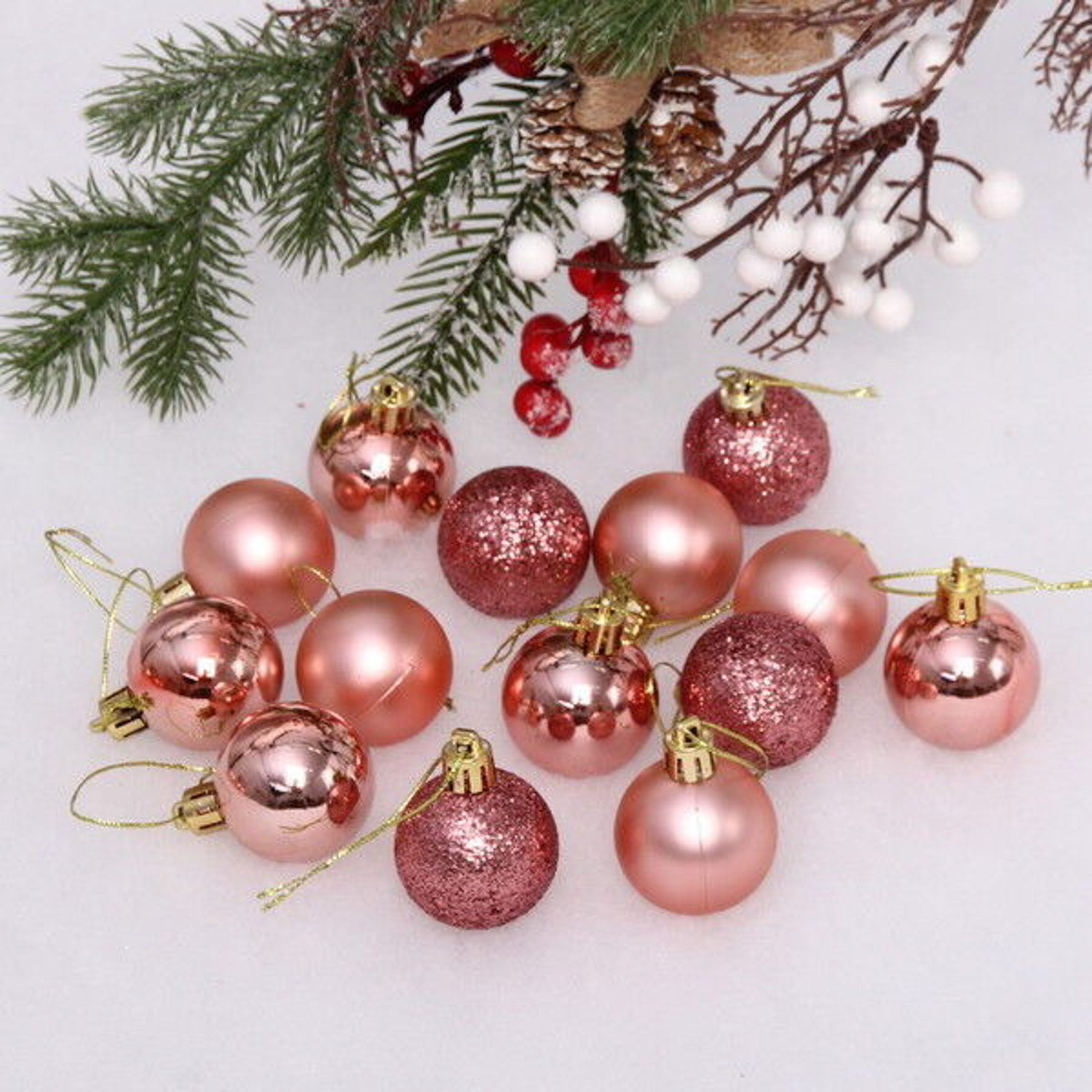 Новогодние шары 4 см (набор 24 шт) "Микс фактур", розовый