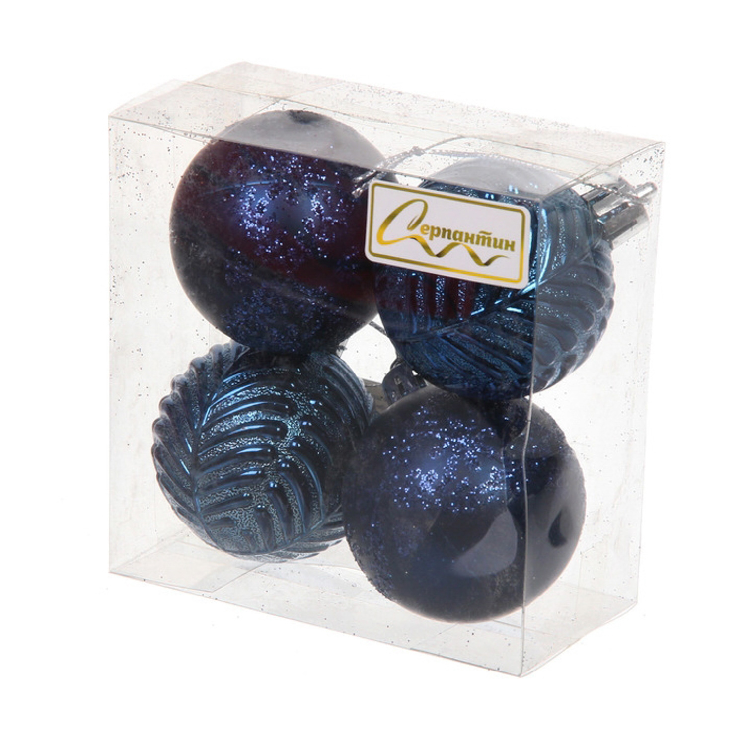 Новогодние шары 5 см (набор 4 шт) "Лесная тайна", сапфир