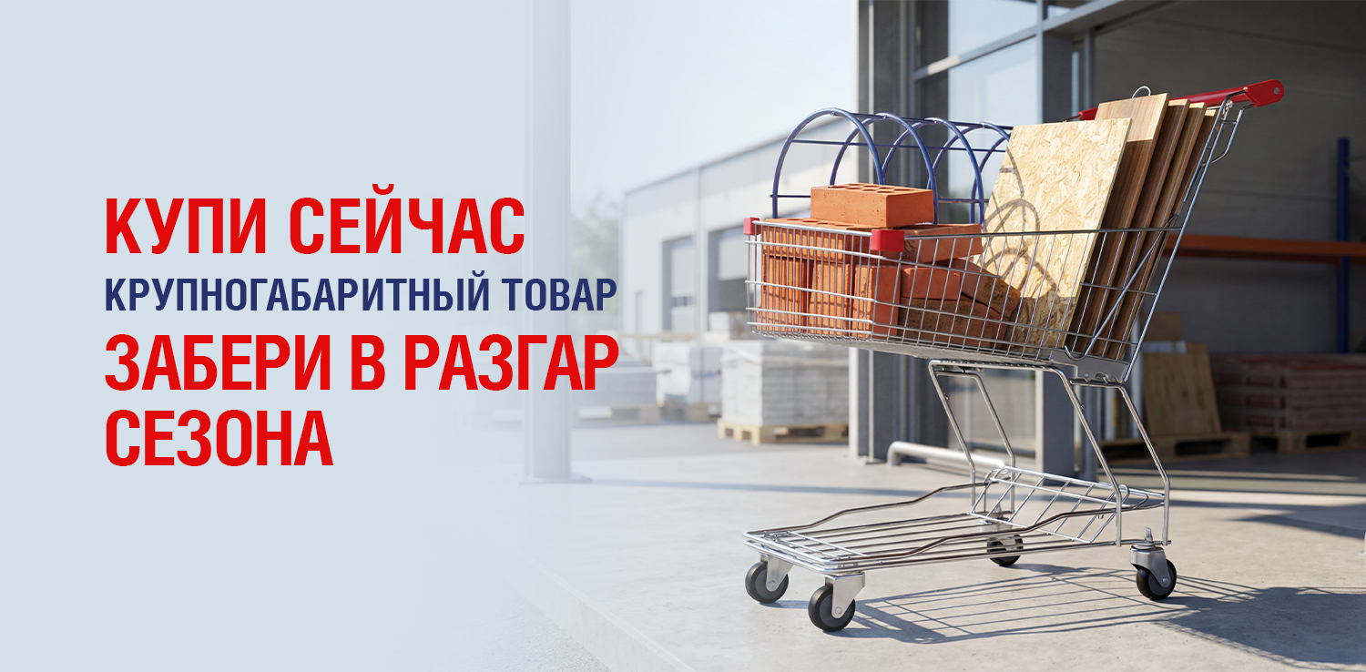 Покупайте листовые материалы, сухие смеси, дерево, кирпич, строительные блоки, тротуарную плитку, сыпучие товары, утеплители, укрывные материалы, поликарбонат, каркасы теплиц, напольные покрытия, керамическую плитку, двери, панели ПВХ или МДФ и другие крупногабаритные товары заранее — а забрать сможете позже, когда начнётся активный сезон работ. Мы бесплатно сохраним вашу покупку до 30 дней* — чтобы вы могли подготовиться без спешки, лишних хлопот и переплат. Отличный способ зафиксировать цену сегодня и спокойно планировать стройку или ремонт на будущее.